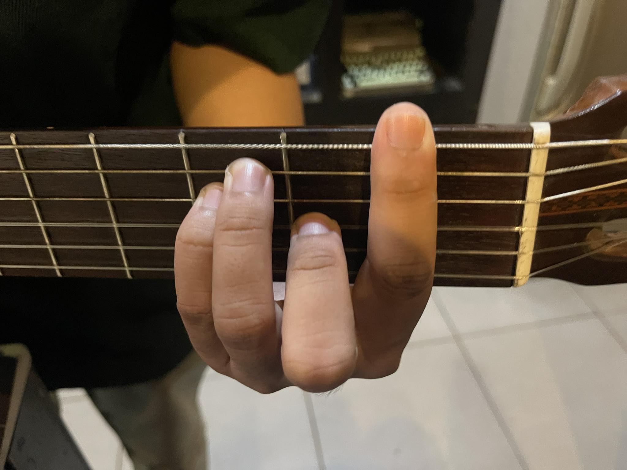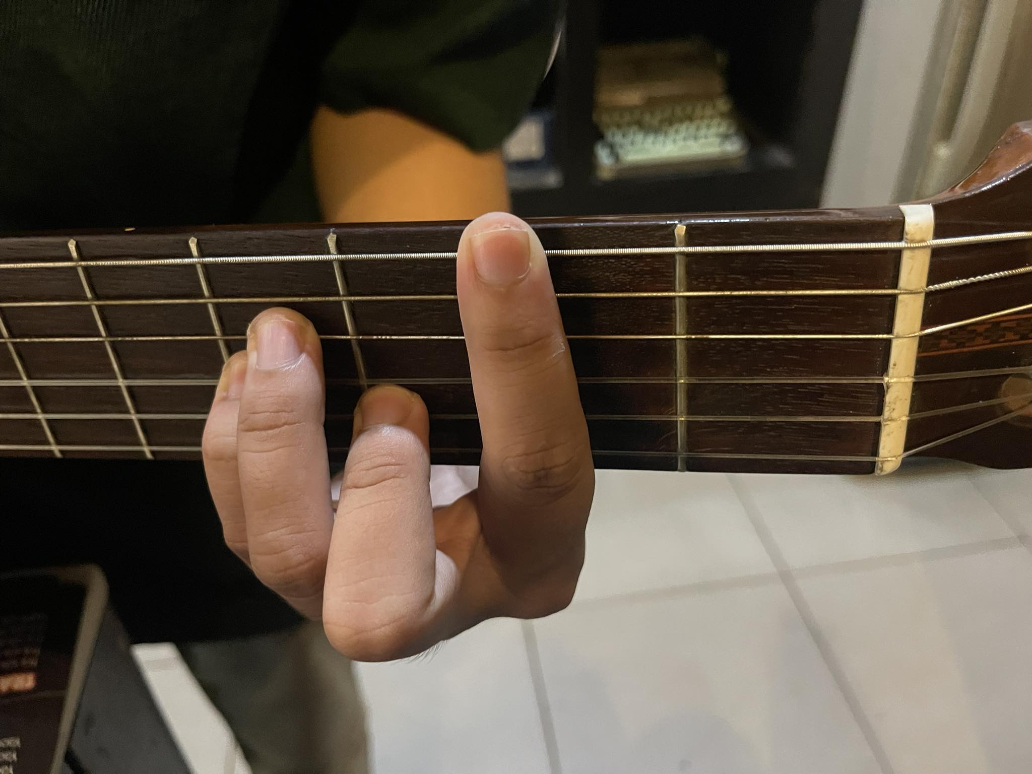 Khi mới tập chơi, bạn đừng quá tập trung vào bấm chặn cả ngón trỏ mà hãy tập trung vào những ngón còn lại có được tiếng sạch nhất, sau đó bạn có thể sửa ngón trỏ khiến cho hợp âm sạch sau.